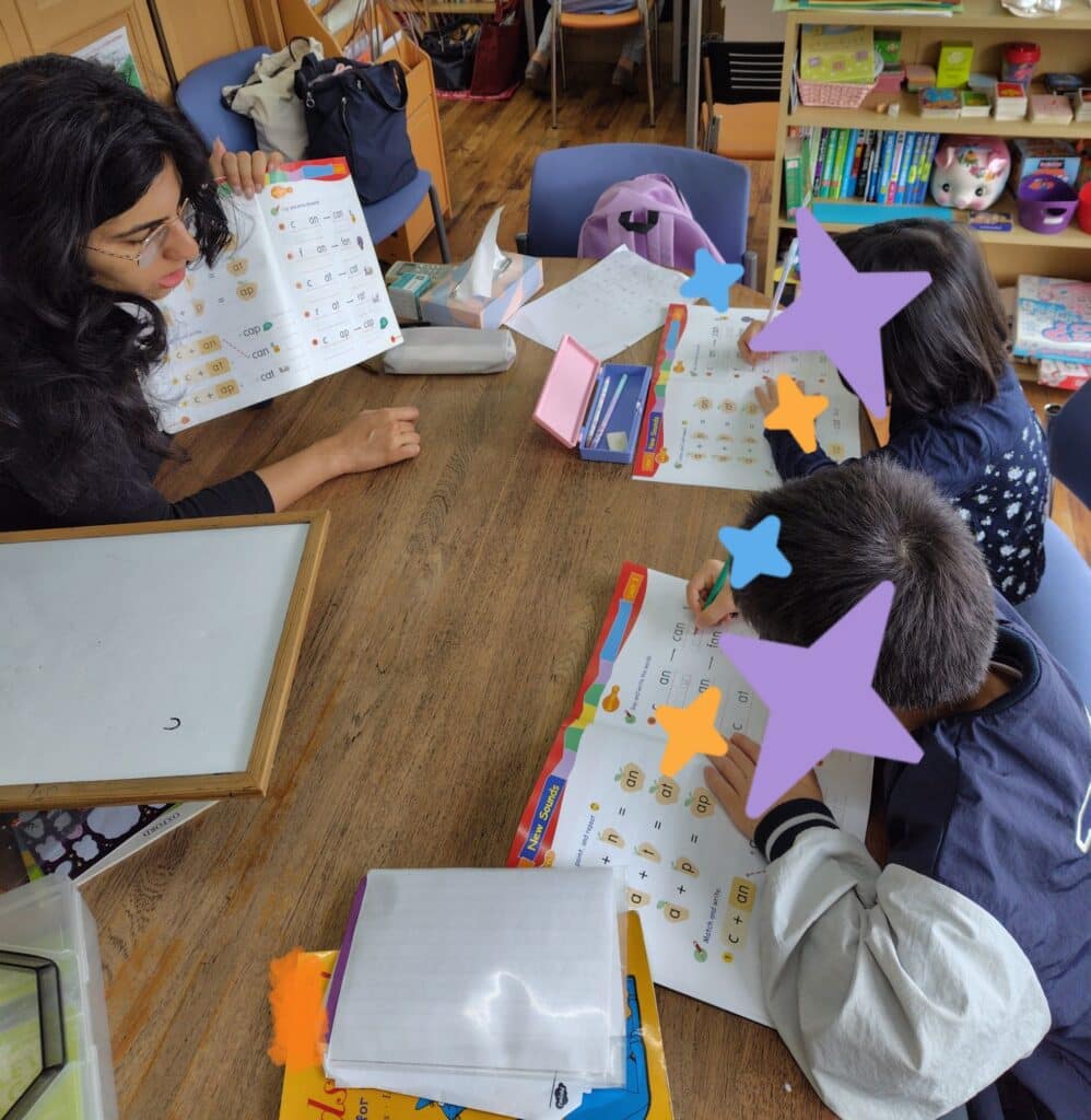 先生と一緒にしっかり発音練習をしたあとワークシートに集中して取り組んでいる様子です✏️